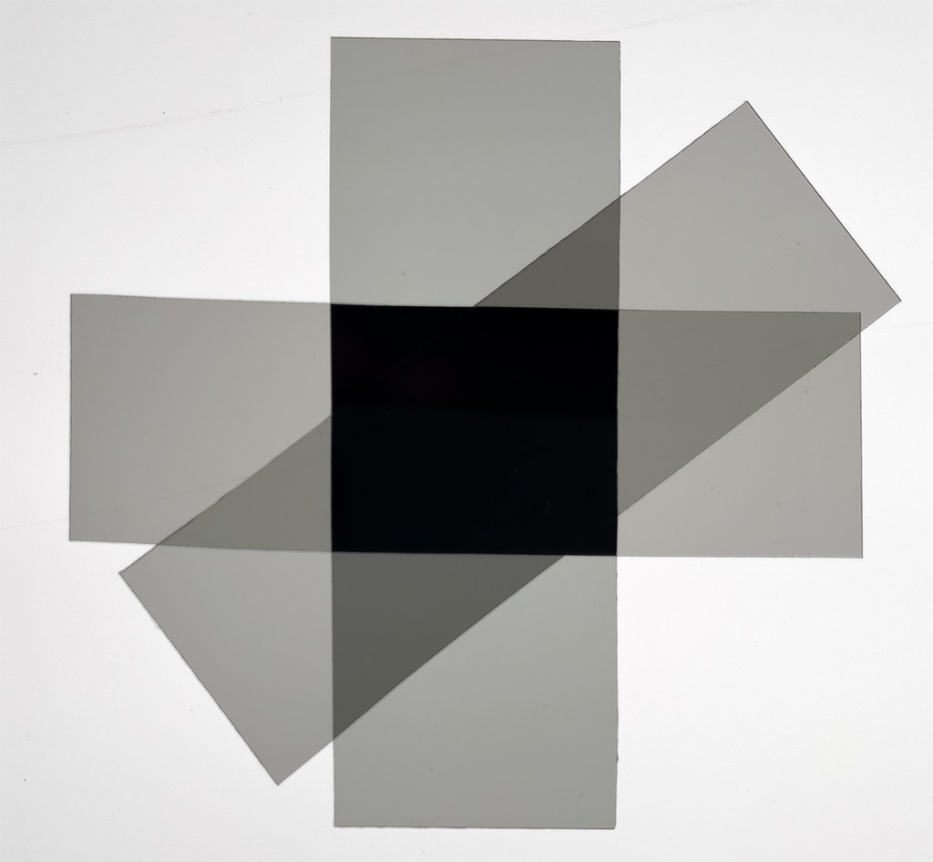 Now, we can see some light coming through the three-piece sandwich. The oblique linear polarizing filter actively did something to the light coming through the bottom filter so that some of it now passes through the top filter!!