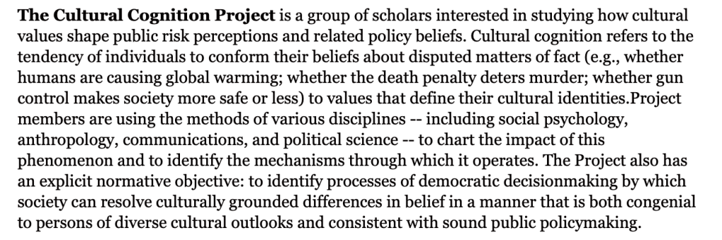Cultural Cognition – Dan Kahan and Others