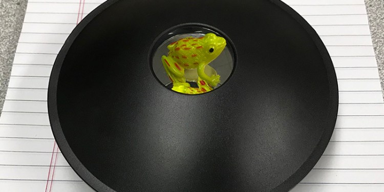 This is the Mirascope. It is available from Amazon for $10.99 and uses the power of parabolic mirrors to create a startling optical illusion. Parabolic mirrors are also used for deep space communication.